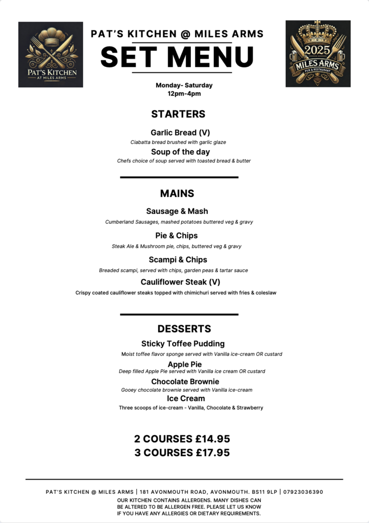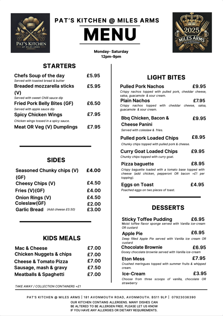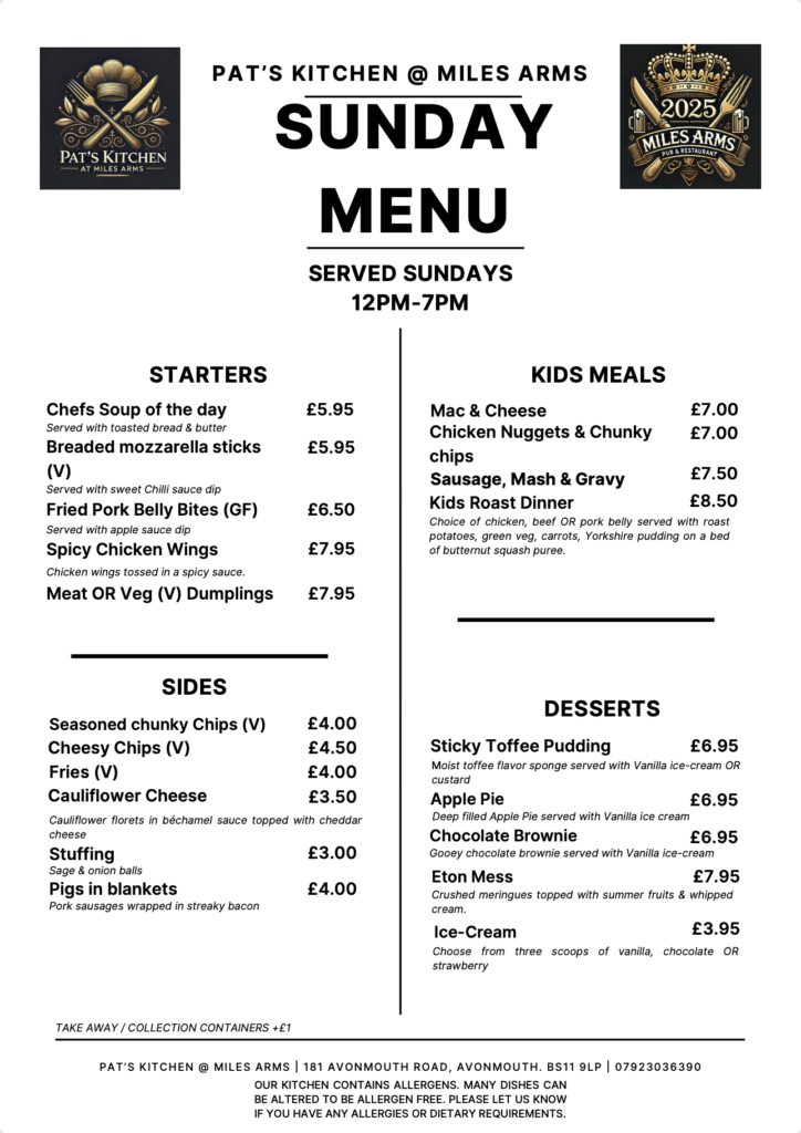 Address: Miles Arms, 181 Avonmouth road, Avonmouth. BS11 9LW.